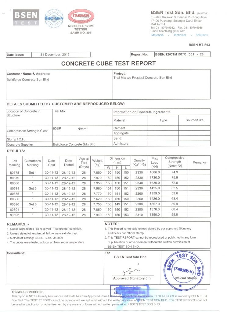 Prestasi Concrete Sdn. Bhd. first won the coveted MS ISO 9001 certification on 22 December 2000. We are now certified under UKAS.